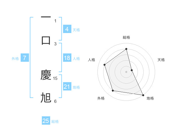 一口 慶旭さんを姓名の画数から五運を鑑定