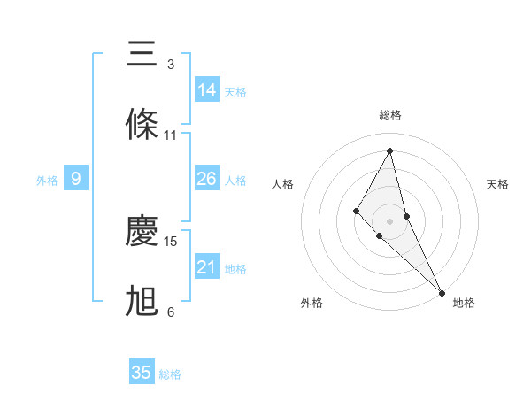 三條 慶旭さんの総格は35画の4点!