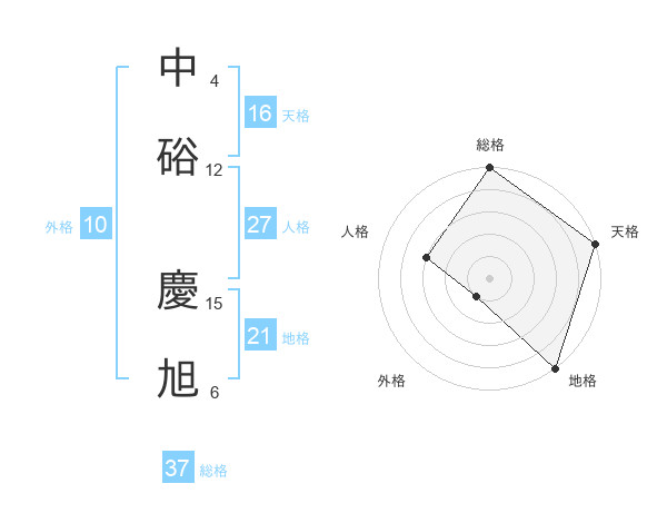 中硲 慶旭さんの総格は37画の5点!