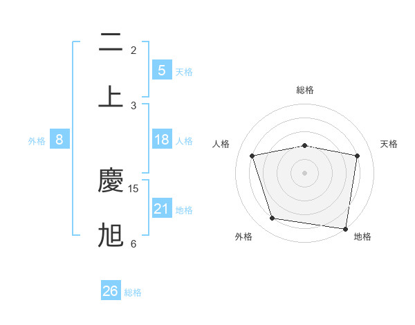 二上 慶旭さんを姓名の画数から五運を鑑定