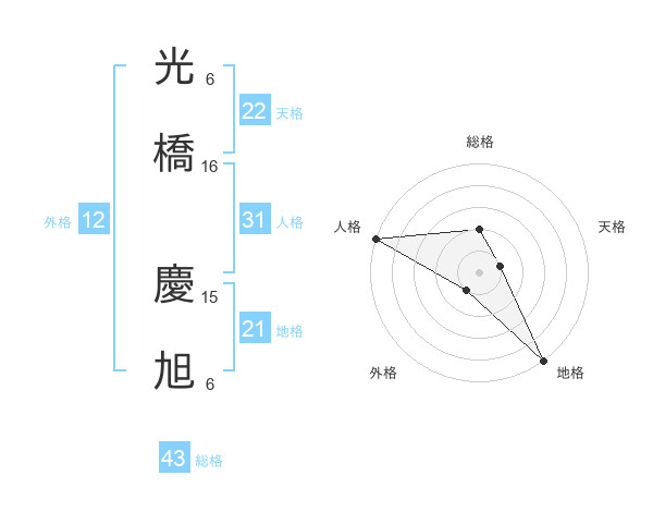 光橋 慶旭さんの総格は43画の2点!