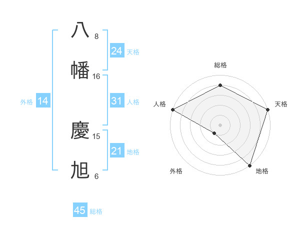 八幡 慶旭さんの総格は45画の4点!
