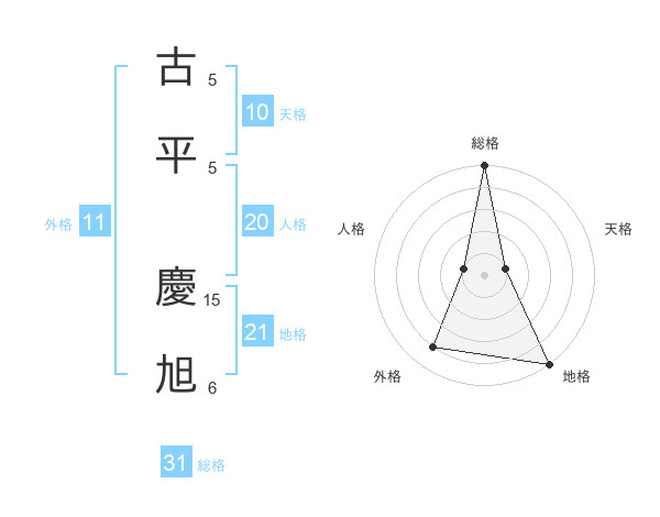 古平 慶旭さんの総格は31画の5点!
