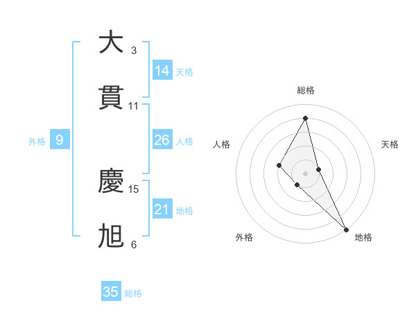 大貫 慶旭さんの天格は14画の1点!