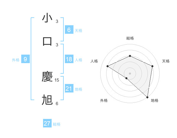 小口 慶旭さんを姓名の画数から五運を鑑定