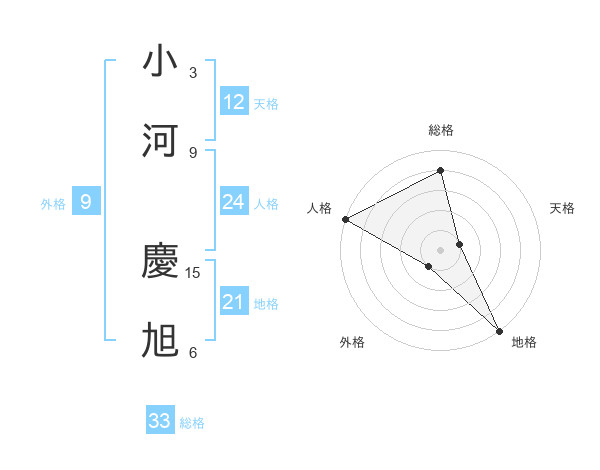 小河 慶旭さんの総格は33画の4点!