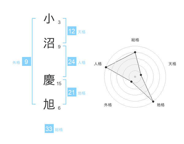 小沼 慶旭さんの総格は33画の4点!