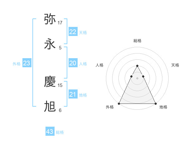 弥永 慶旭さんの外格は23画の5点!