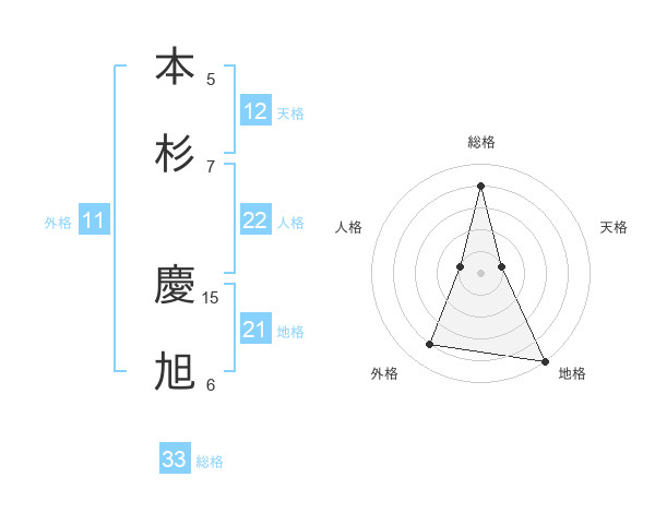 本杉 慶旭さんを姓名の画数から五運を鑑定