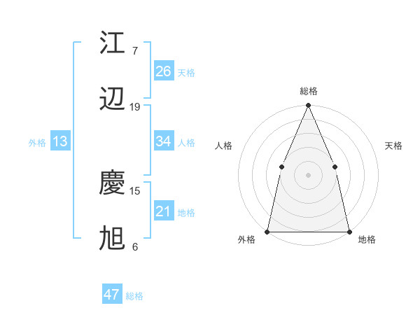 江辺 慶旭さんを姓名の画数から五運を鑑定