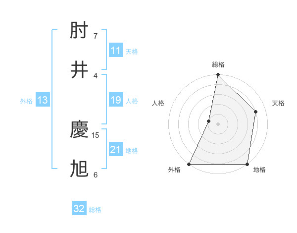 肘井 慶旭さんを姓名の画数から五運を鑑定