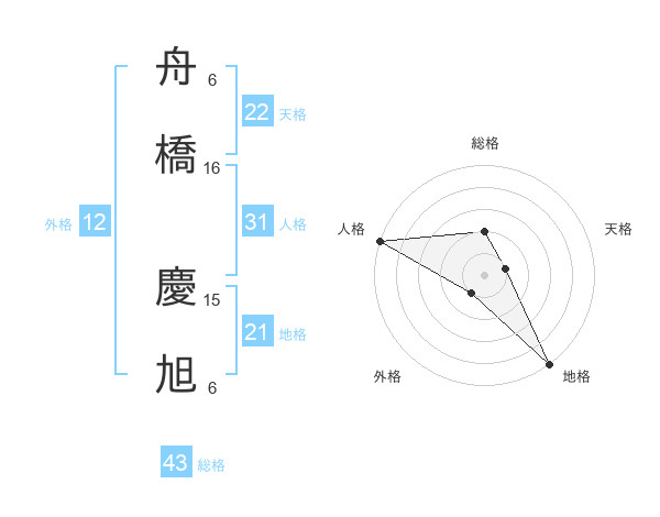 舟橋 慶旭さんの総格は43画の2点!