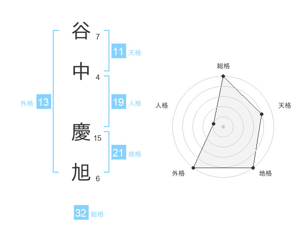 谷中 慶旭さんの総格は32画の5点!
