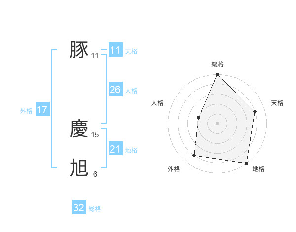 豚 慶旭さんを姓名の画数から五運を鑑定