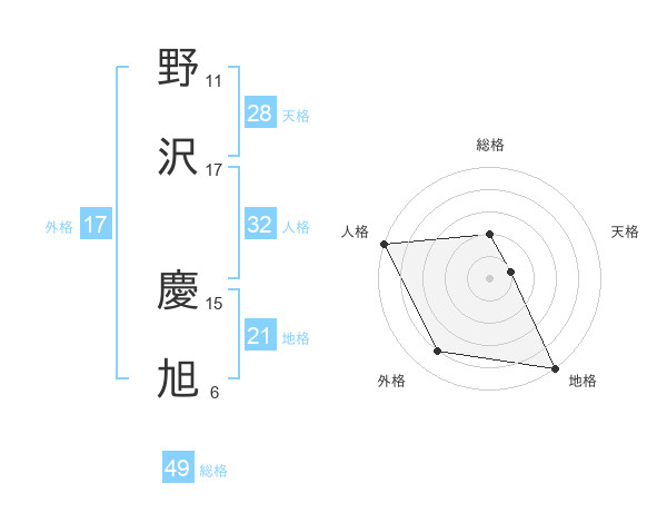 野沢 慶旭さんを姓名の画数から五運を鑑定