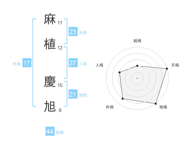 麻植 慶旭さんの天格は23画の5点!