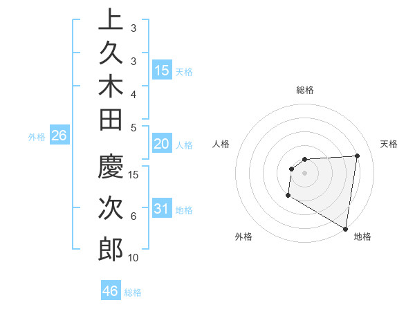 上久木田 慶次郎さんを姓名の画数から五運を鑑定