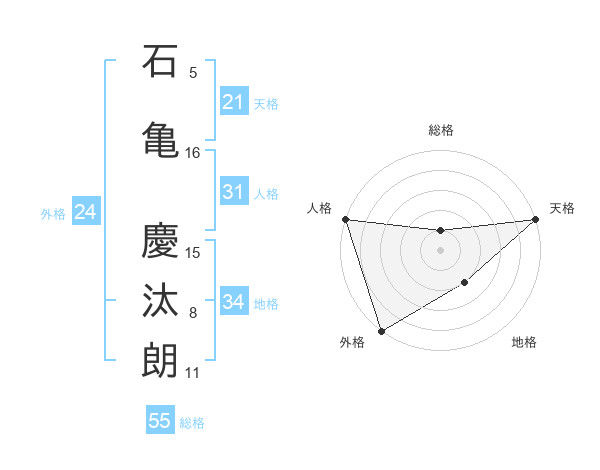 石亀 慶汰朗さんを姓名の画数から五運を鑑定
