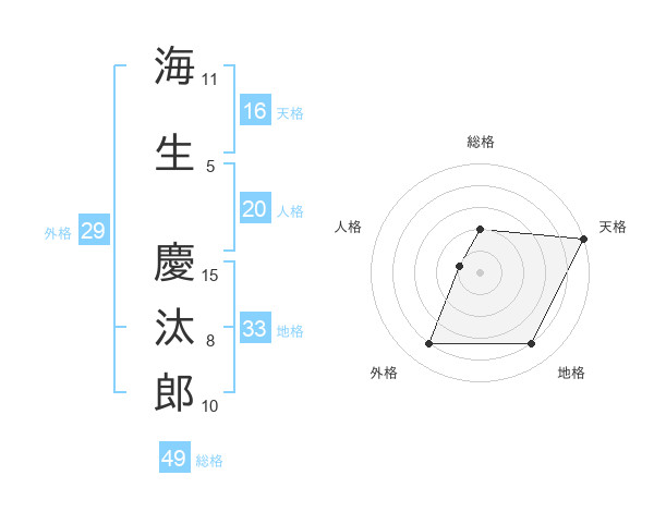 海生 慶汰郎さんを姓名の画数から五運を鑑定