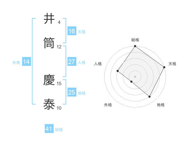 井筒 慶泰さんを姓名の画数から五運を鑑定