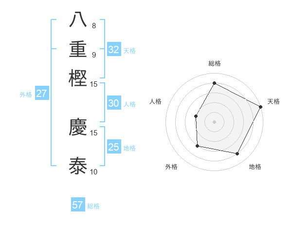 八重樫 慶泰さんを姓名の画数から五運を鑑定