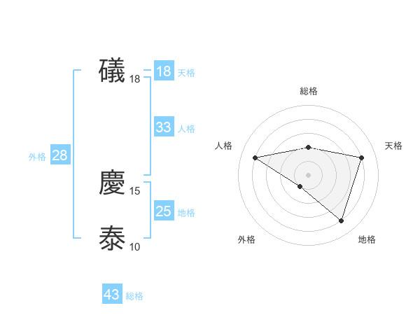 礒 慶泰さんの天格は18画の4点!