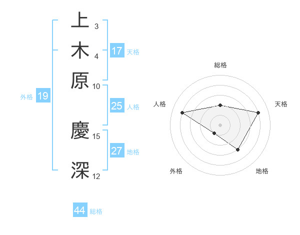 上木原 慶深さんを姓名の画数から五運を鑑定