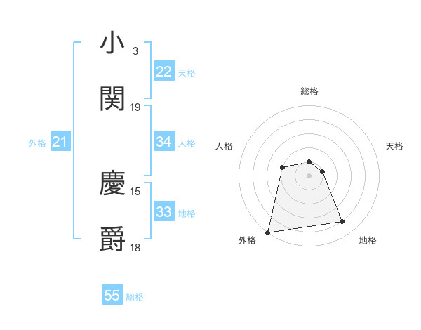 小関 慶爵さんを姓名の画数から五運を鑑定