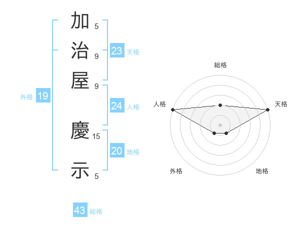 加治屋 慶示さんを姓名の画数から五運を鑑定