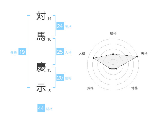 対馬 慶示さんを姓名の画数から五運を鑑定