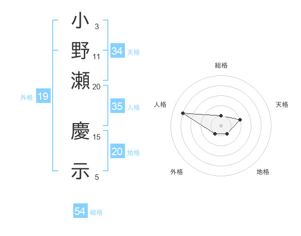 小野瀬 慶示さんを姓名の画数から五運を鑑定