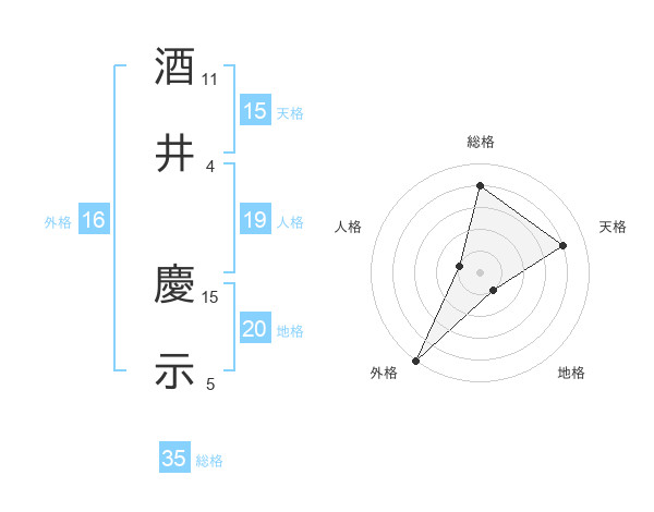 酒井 慶示さんの総格は35画の4点!