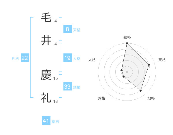 毛井 慶礼さんの天格は8画の4点!