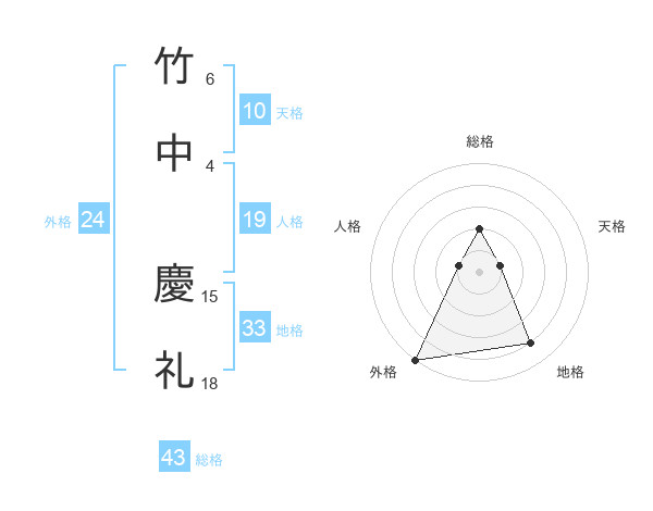 竹中 慶礼さんを姓名の画数から五運を鑑定