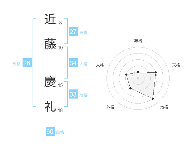 近藤 慶礼さんを姓名の画数から五運を鑑定