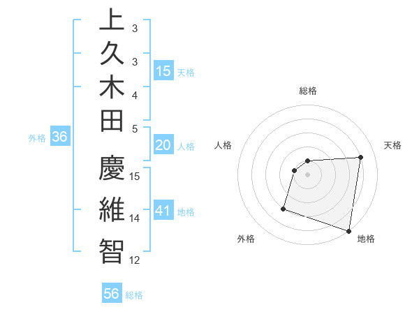 上久木田 慶維智さんを姓名の画数から五運を鑑定