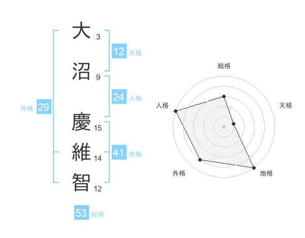 大沼 慶維智さんを姓名の画数から五運を鑑定