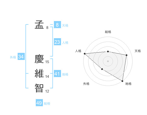 孟 慶維智さんを姓名の画数から五運を鑑定