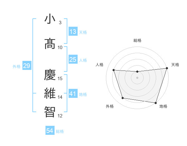 小髙 慶維智さんを姓名の画数から五運を鑑定