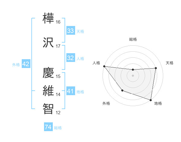 樺沢 慶維智さんを姓名の画数から五運を鑑定