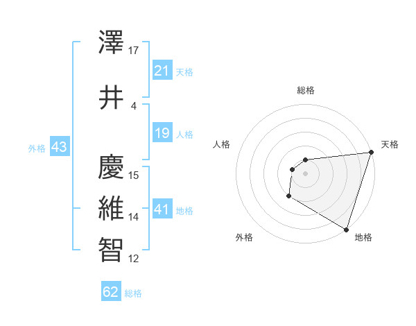 澤井 慶維智さんを姓名の画数から五運を鑑定