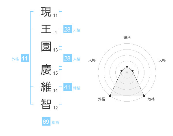 現王園 慶維智さんを姓名の画数から五運を鑑定