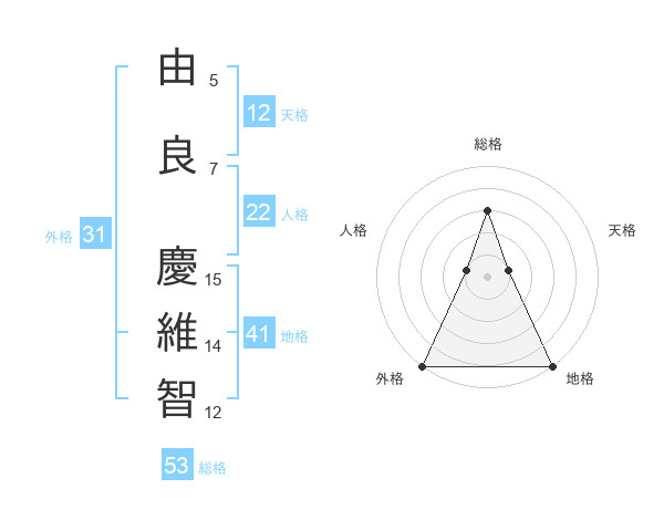 由良 慶維智さんの総格は53画の3点