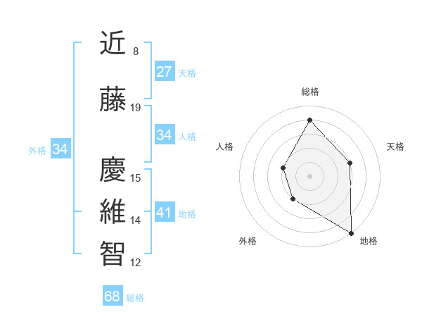 近藤 慶維智さんを姓名の画数から五運を鑑定