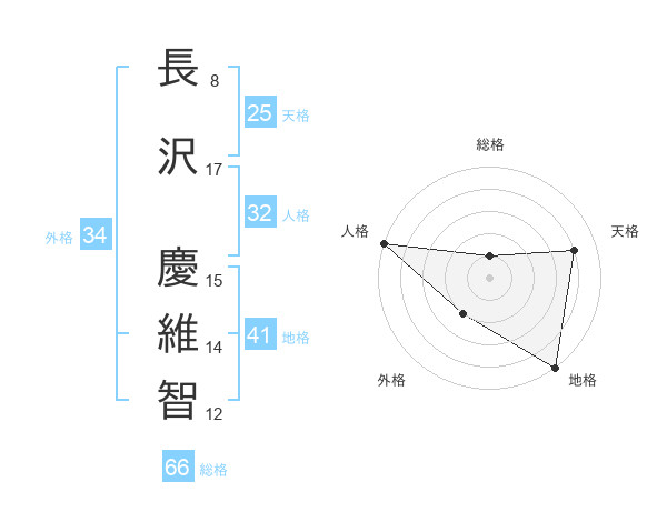 長沢 慶維智さんを姓名の画数から五運を鑑定