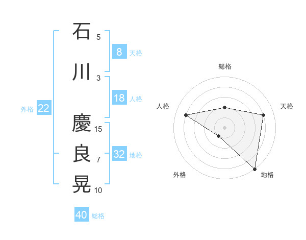 石川 慶良晃さんを姓名の画数から五運を鑑定