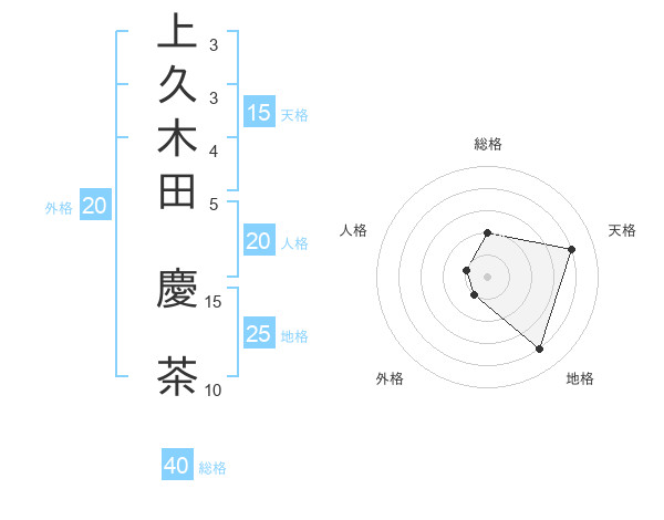 上久木田 慶茶さんを姓名の画数から五運を鑑定