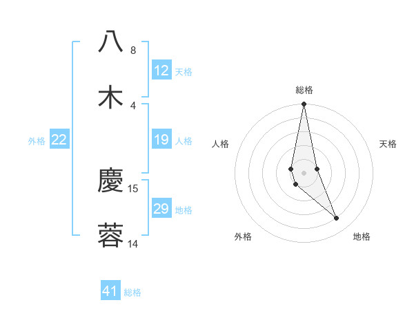 八木 慶蓉さんの総格は41画の5点!