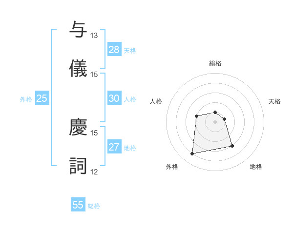 与儀 慶詞さんを姓名の画数から五運を鑑定