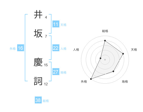 井坂 慶詞さんの総格は38画の4点!